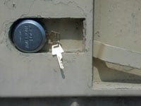 The high security locking system features a state-of-the-art, shackleless lock, fully enclosed in a heavy steel circular pocket to provide protection from tampering and cutting. When opened with a key, this locking system allows easy entry into the storage unit.